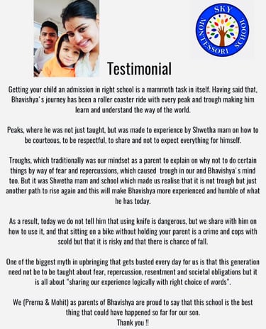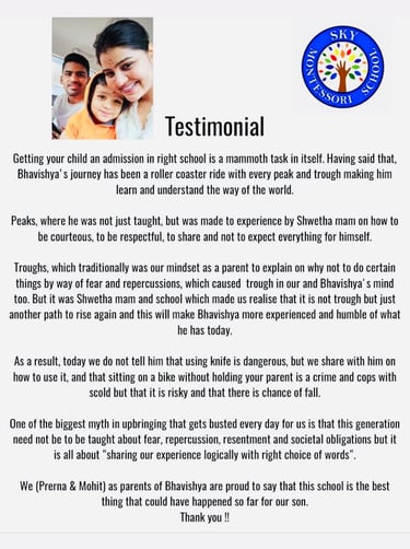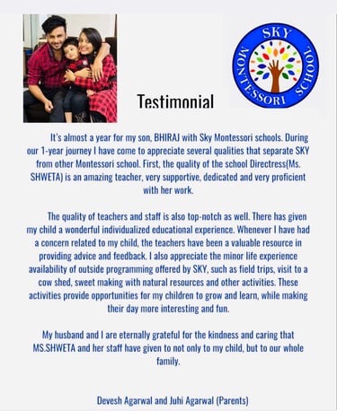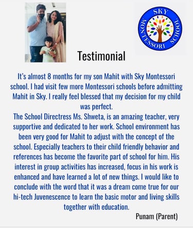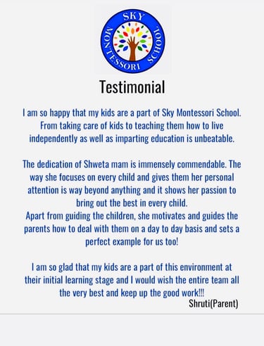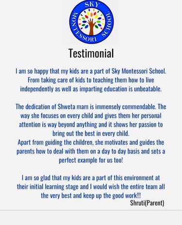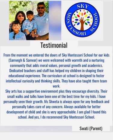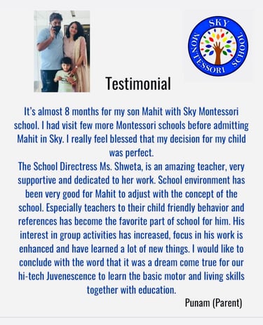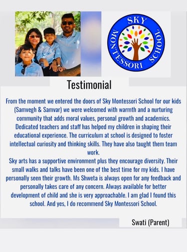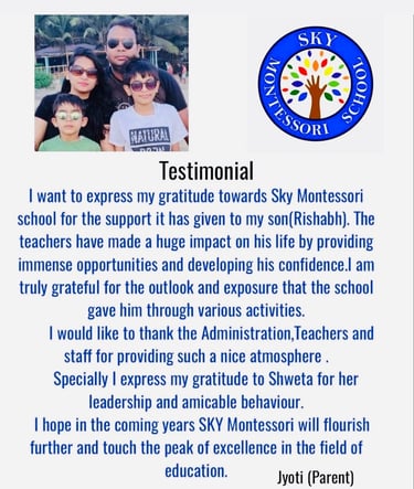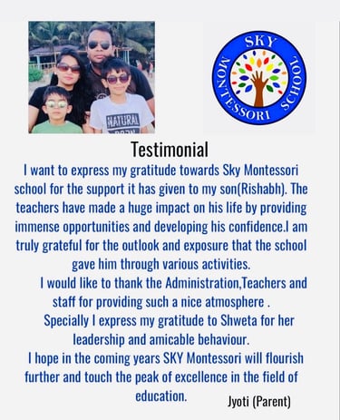 At Sky Montessori School, our vision is fueled by unwavering dedication and a profound passion for nurturing the potential of every child. Located in the culturally rich Himayathnagar area of Hyderabad, our school serves as a sanctuary for learning, exploration, and growth.